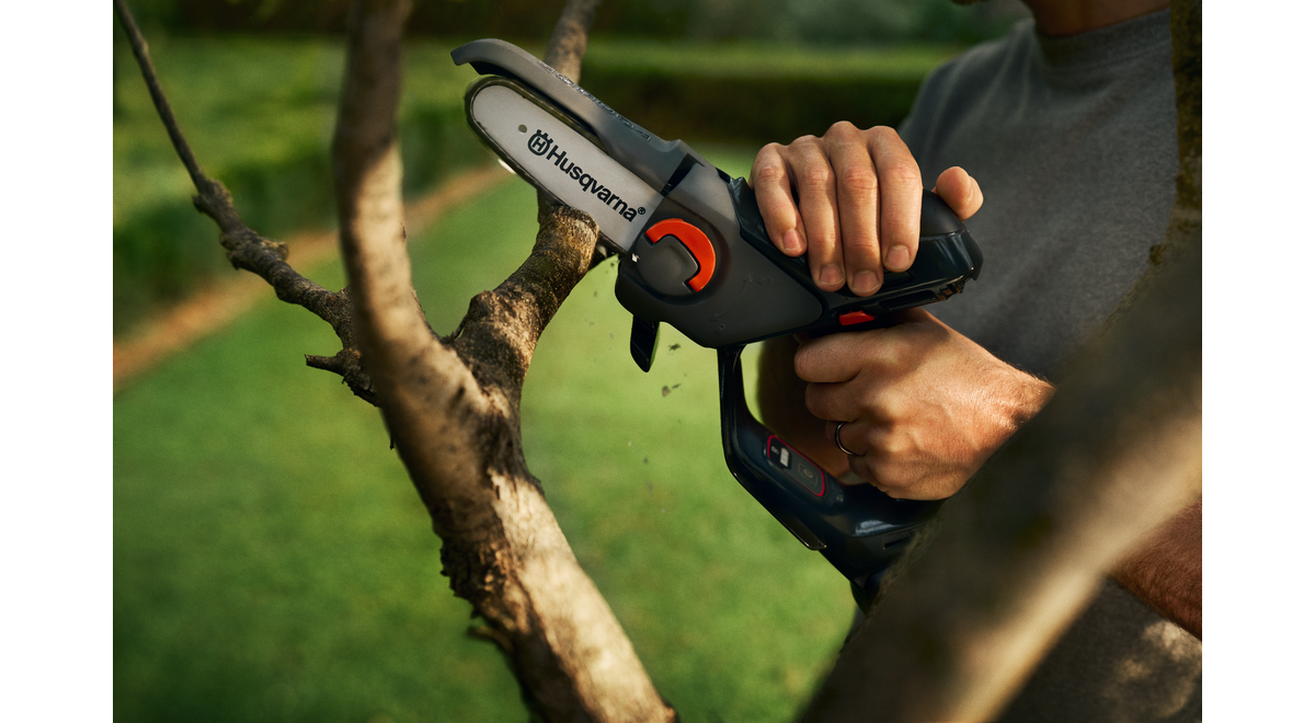 Kompakt handhållen batterisåg, perfekt för att beskära träd, kapa tunnare grenar och för mindre snickeriarbeten. Denna beskärningssåg är utvecklad av våra beprövade motorsågsexperter och är robust nog att enkelt kapa 75 mm tjocka grenar. Utbyte av svärd och kedja sker enkelt utan verktyg. Sågen har ett mjukt handtag som ger att fast grepp och minimerar risken för olyckor samt automatisk avstängning om den lämnas utan uppsikt. Förvaras enkelt med den medföljande kroken och är en del av 18V POWER FOR ALL-batterisystemet.Husqvarna Aspire batteridrivna verktyg har utvecklats med begränsat utrymme i åtanke. Det är därför varje produkt kommer med en skräddarsydd förvaringskrok som kan monteras direkt på väggen eller användas tillsammans med Husqvarna Aspire förvarings-system. Denna verktygsförvaring kan utökas så att alla Aspire™ trädgårdsredskap kan hänga tillsammans.Denna produkt är en del av POWER FOR ALL ALLIANCE och är kompatibel med många andra batterier och laddare från andra tillverkare och varumärken inom alliansen. Det betyder att du bara behöver köpa ett batteri till alla dina hem- och trädgårdsprodukter.