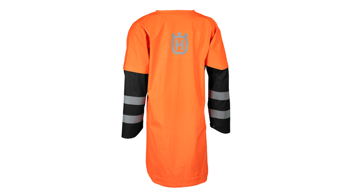 Ryggskydd tillverkat i polyestertrikå med hållbar ensidig PU-beläggning med svetsade sömmar – ett starkt men ändå lätt och ljudlöst material. Ryggskyddet är designat för arbetspositioner vid arbete med motorsåg. Ryggskyddet har extra lång rygg med en regnkant så att regnet rinner av mot sidorna när du arbetar med böjd rygg. En justerbar främre knäppförslutning så att du kan justera bredden vid behov. Godkända enligt EN343. En storlek.